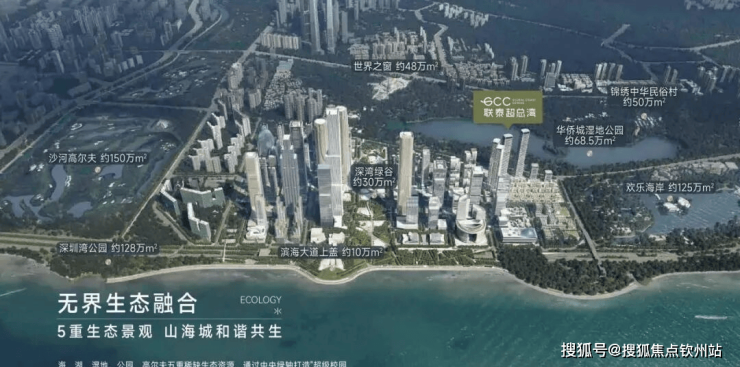 项目坐拥“海、湖、湿地、公园、高尔夫”五重生态资源,总体规模约519万㎡,相当于2个纽约中央公园,在深圳核心区堪称绝无仅有。与单一景观视野的传统顶豪不同,联泰超总湾被多重生态景观环绕:北揽国家级永久保护区华侨城湿地,南瞰深圳湾公园海景,东望欢乐海岸与红树林,沙河高尔夫球场等资源环伺左右。