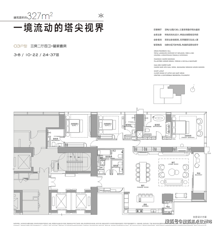 主力户型:303㎡、326㎡、404㎡、572㎡等大平层,最大户型达1000㎡