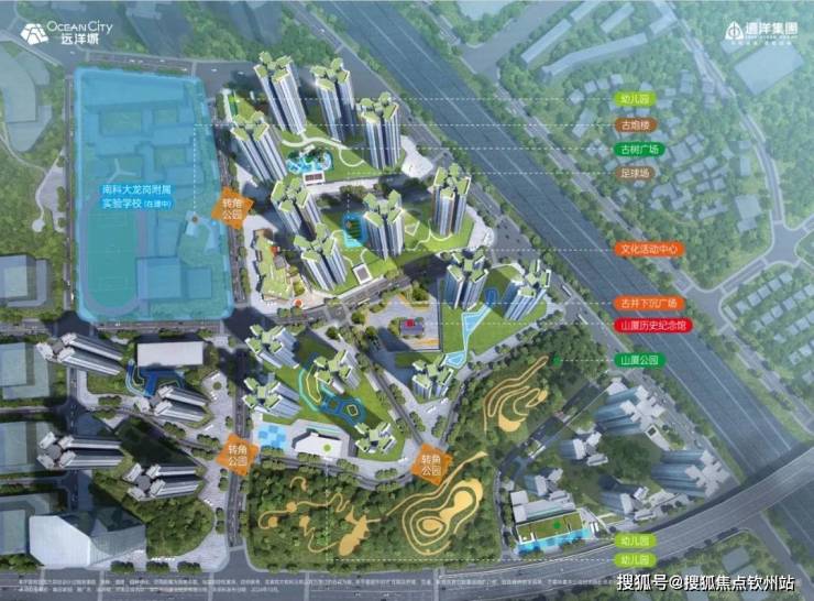 深圳远洋城,超百万方全配套综合大城,家门口南科大龙岗附属实验学校(在建中),家门口山厦公园,规划有3所幼儿园、约4万平米商业、文化活动中心、文化主题园林、四大主题泛会所架空层、写字楼等,以古树广场搭建人文住区的首开地块,为大城幸福生活赋能。
