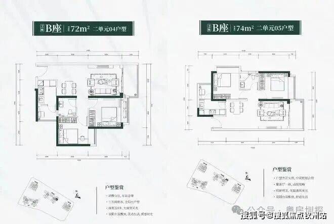 72-74㎡两房两厅一卫(2 栋 B 座二单元 04/05 户型)