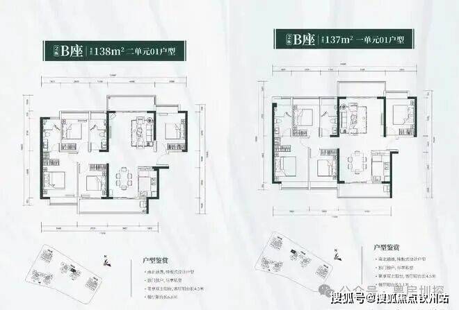 137-138㎡四房两厅两卫(2栋B座一单元01/04户型、二单元01户型)