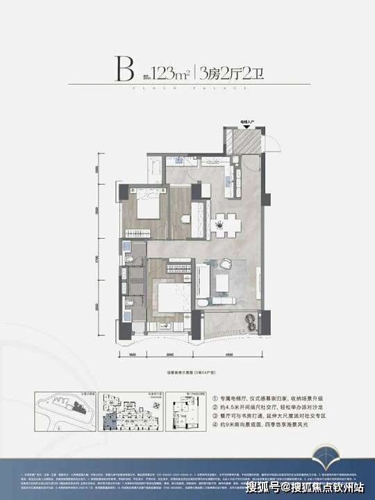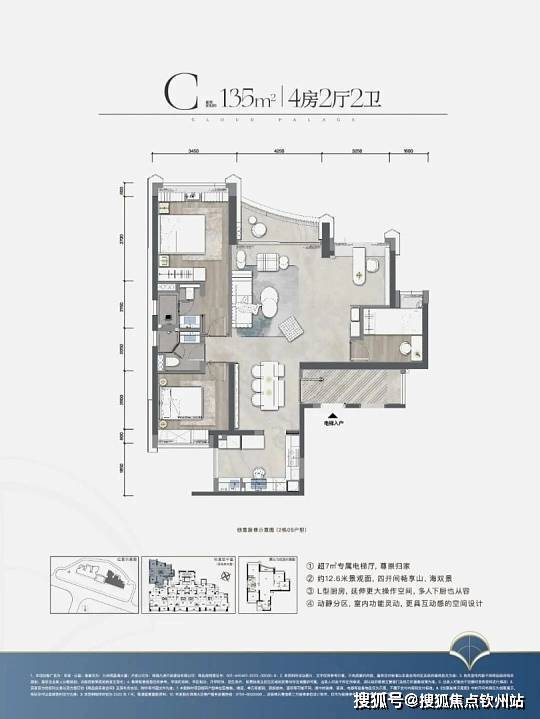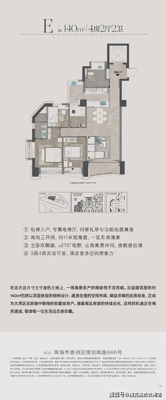 产品:建筑面积约111-140㎡三至四房,270度环幕山海景观
