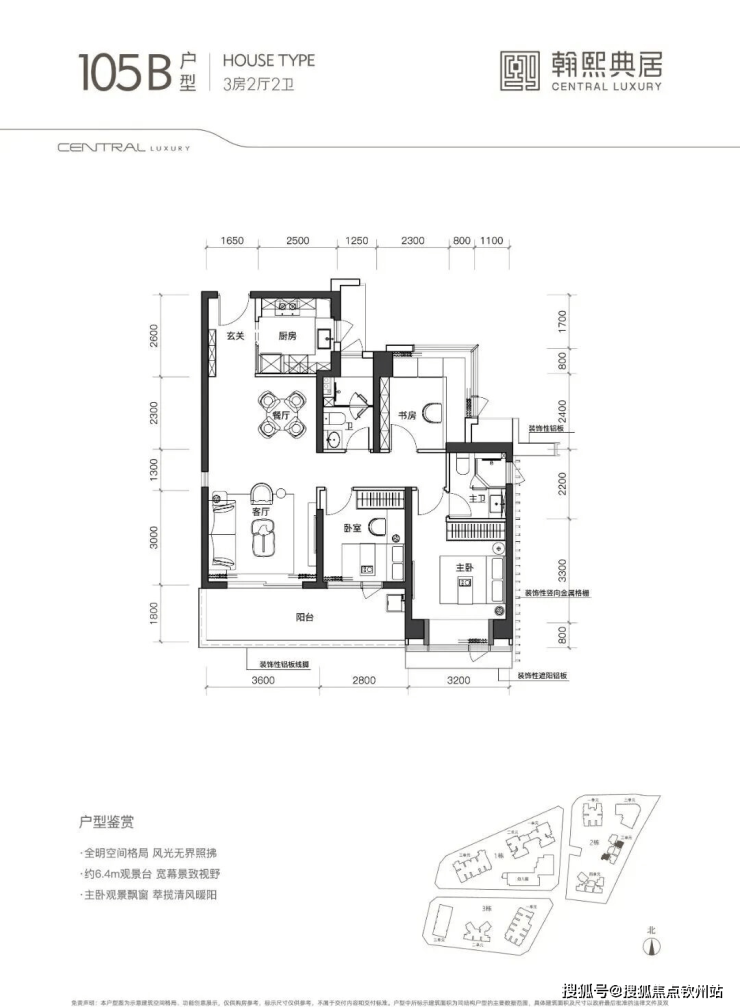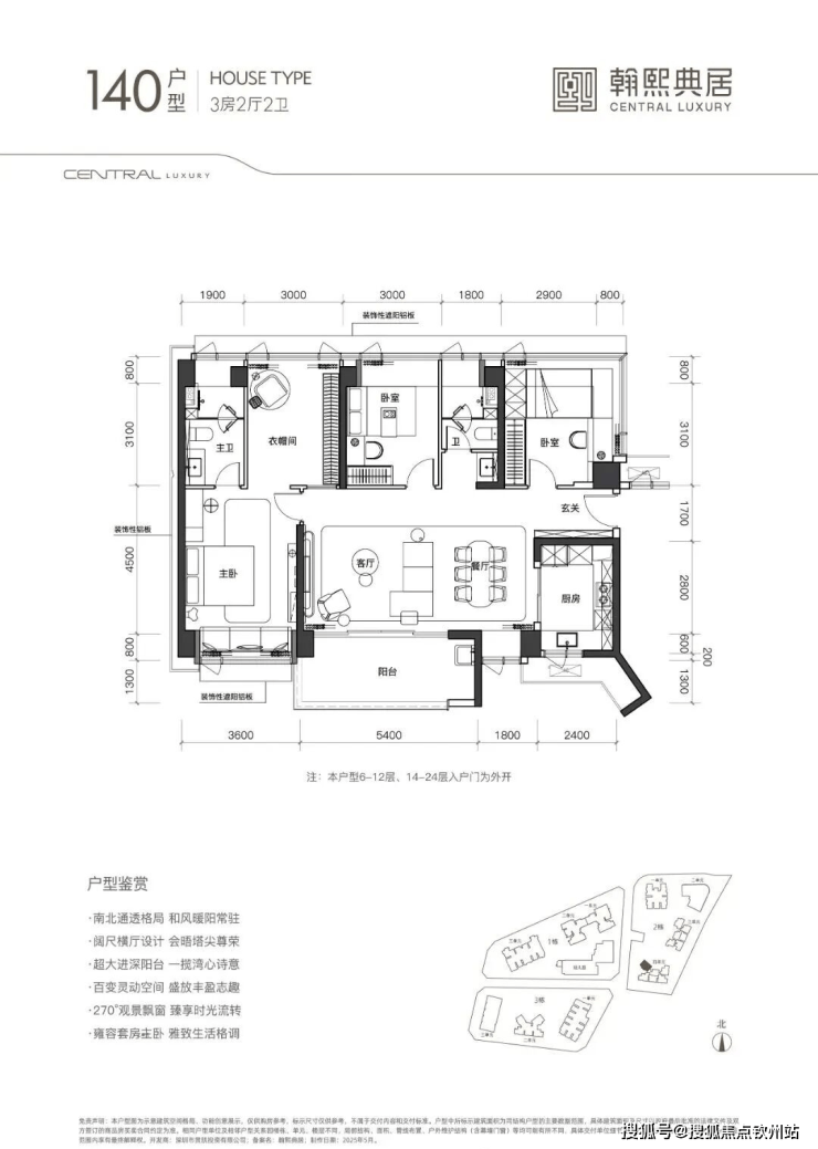 5、户型实用:新规后户型得房率约90%,105-140㎡的3-4房设计,空间利用率高,部分户型阳台开间达6.5米,采光通风佳。