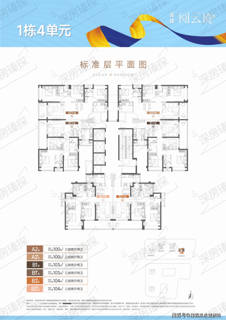 户型:本次推售1栋4单元,共246套房源,面积100-104平方米,均为3房2卫户型。