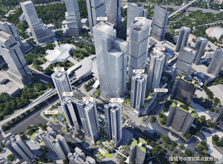 北区做的是空中花园,1楼地面规划有公交首末站,公共充电站,二楼空中花园规划有地铁主题儿童乐园,会客厅;南区规划了1栋总高239米,1栋总高250米的写字楼超塔,还有2栋人才房,总共625套。