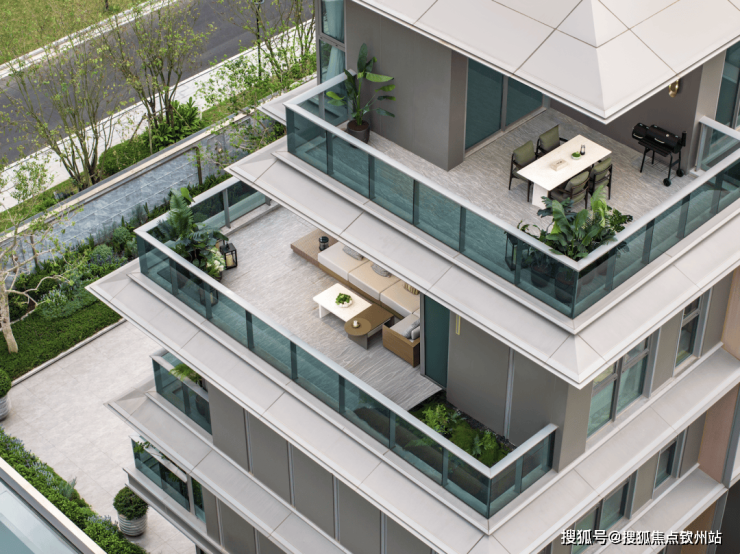 超13米的南向采光面,阳台斜顶设计,每一层的视野面拉到极致。