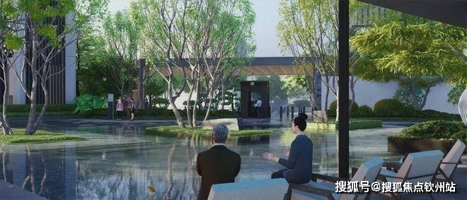 巧借叠水景观臻造礼仪入,辅以树阵、花丛等绿植为点缀,营造恢弘气势,尽显门第威仪。