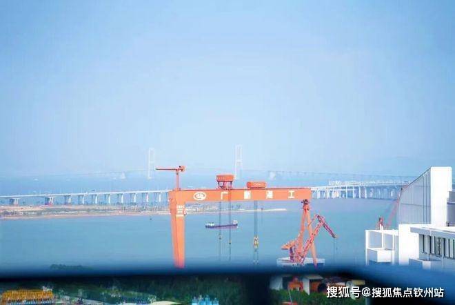 东面是,辽阔无垠的海面,深中通道以雄壮之姿巍然屹立在伶仃洋上空,天晴时甚至眺望深圳城市天际线。