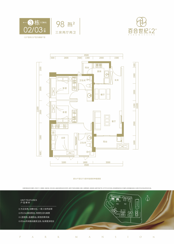 98㎡的3房2厅2卫,折后总价496-527万/套,单价5.06-5.38万/㎡。