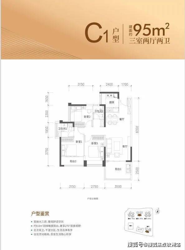 格局:经典竖厅设计,客厅3.5米开间,8.35米进深。