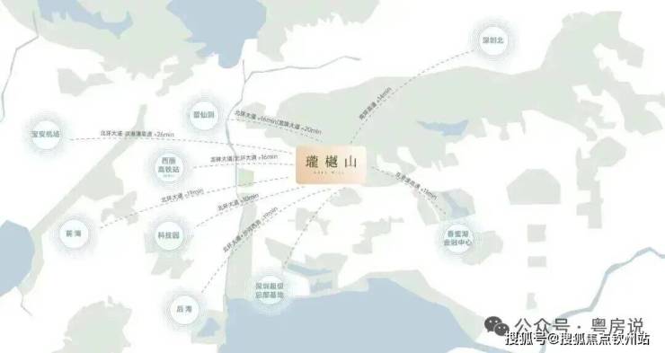 中心区域:深圳山海城中轴,左手香蜜湖、右手华侨城,六大总部基地环伺