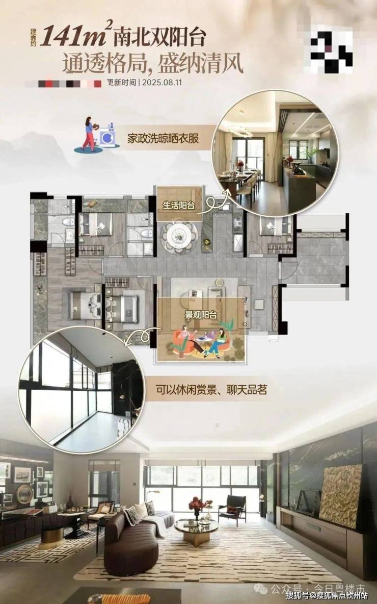 北侧阳台可作家政区,妥帖解决日常洗晾晒需求;南侧景观大阳台则化身为休闲主场,清晨瑜伽、闲坐品茗皆可随心安放。