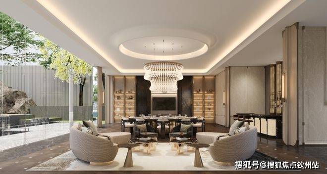 LDKGB一体化厅区设计,面积直逼100㎡,化身奢豪社交主场,无论身处客厅、餐厅或厨房,皆能感受空间带来的包容感与自由度。