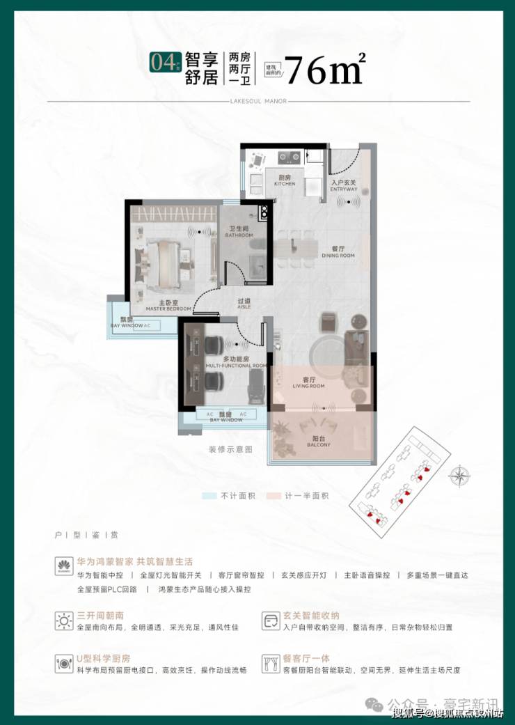 建筑面积约76-118㎡全生命周期户型,精装两至四房