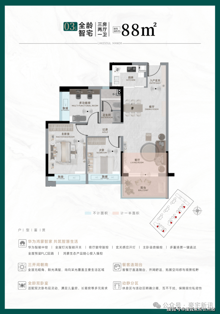 轻松满足二人世界至三代同堂居住需求,高得房率与可变性空间,适配家庭不同阶段成长