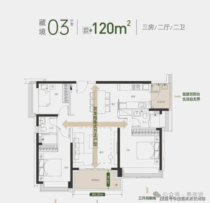 120平双龙抱珠3房2卫;三开间朝南,双阳台,无遮挡视野,总价990万起