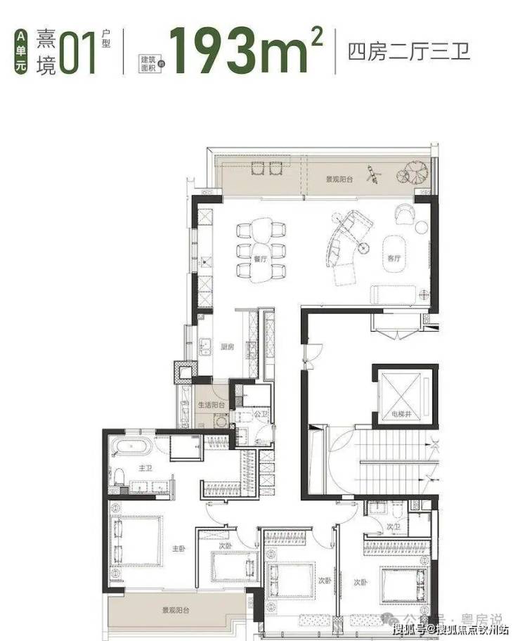 01户型,193平4房3卫,3.6米层高,专梯入户