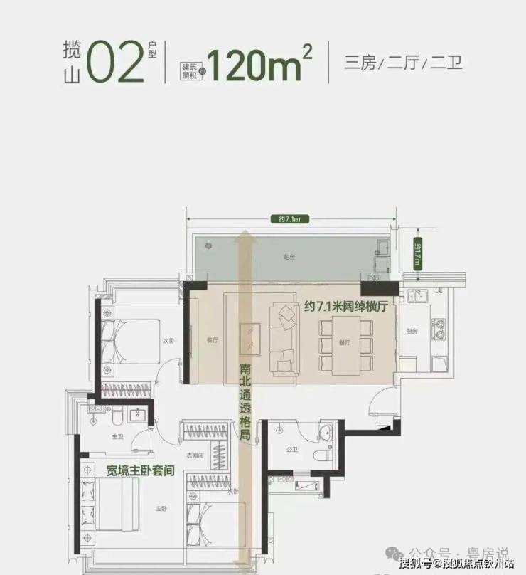 120平横厅3房2卫,揽山美宅;7.1*1.5米大阳台,与山无界对望,总价950万起
