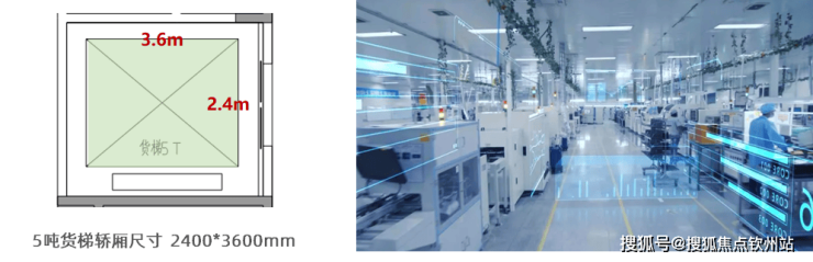 •大尺寸5T货梯,叉车可进出,工业轻松上楼;