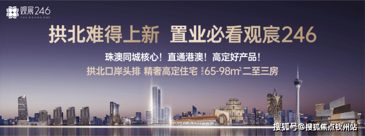 观宸246,位居拱北口岸头排,珠澳同城核心板块,城市中心+口岸物业双极加持,近10年来距离拱北口岸、港珠澳大桥口岸最近的纯住新盘,左手澳门世界级休闲娱乐配套,右手拱北城市烟火生活,坐享醇熟配套,畅享港珠澳三城无界生活。