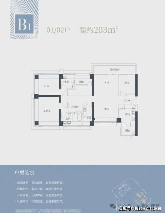 1栋二单元B1户型:面积约为203㎡