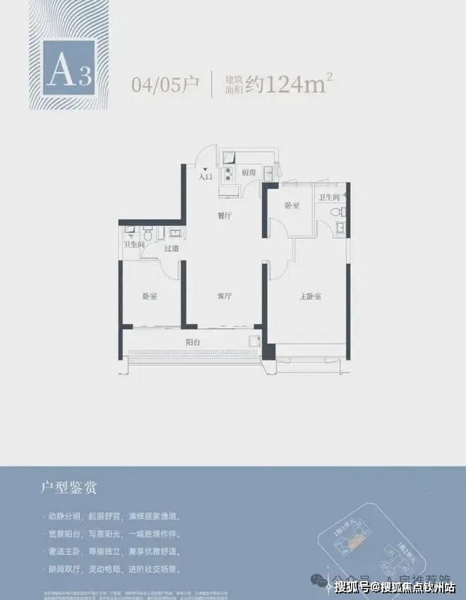 1栋一单元A3户型:面积约为124㎡