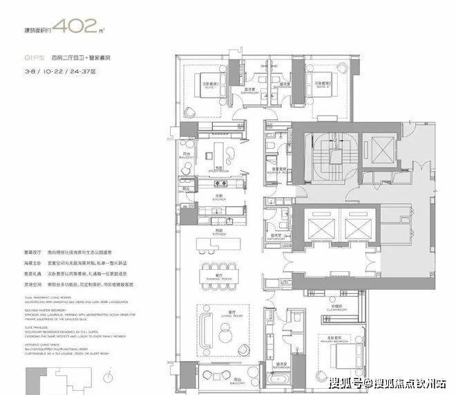主力户型:303㎡、327㎡、404㎡、568㎡等大平层,最大户型达1032㎡