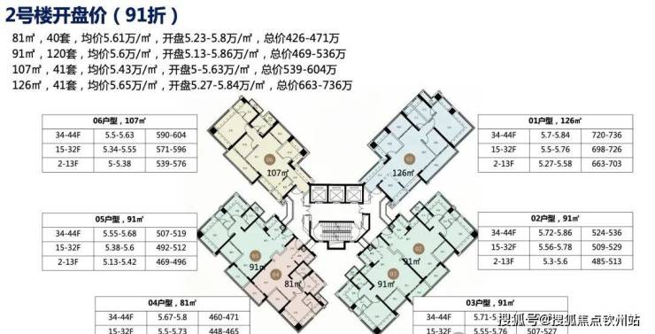 91㎡的4房2厅2卫,折后总价469-536万/套,折后单价5.13-5.85万/㎡。