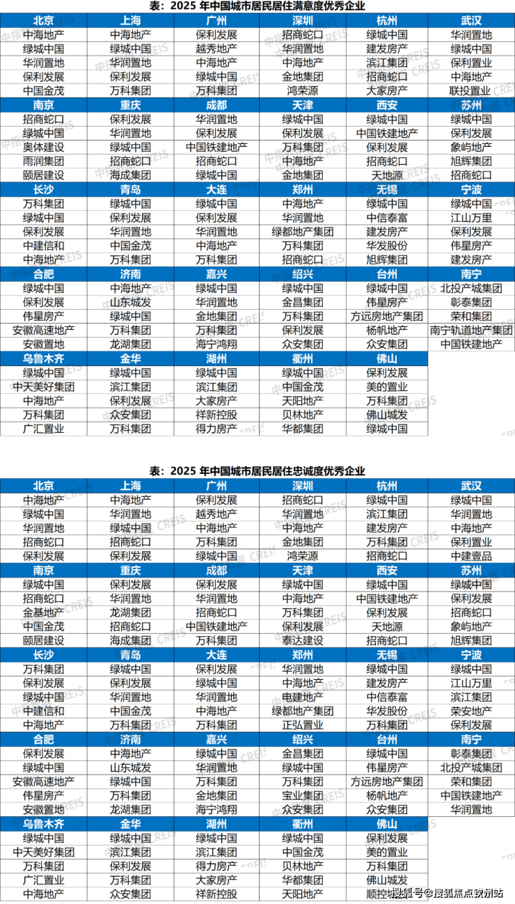 此次调查同步评选出“2025年中国城市居民居住满意度优秀企业”。可以看出,优秀企业在提升居民满意度方面各有高招,但也存在一些共性特征。在产品打造上,都高度重视品质,从建筑质量到服务细节,严格把关。同时,积极拥抱科技创新,将AI、大数据等技术融入产品与服务中,提升运营效率与服务体验。此外,注重客户关系维护,建立良好的沟通反馈机制,及时了解业主需求并加以满足。在依托2025年中国城市居民居住满意度普查数据的基础上,研究组构建包含总体满意度、复购意愿指数及推荐倾向系数的多维评价模型,经科学量化分析最终形成"2025年中国城市居民居住忠诚度优秀企业"。