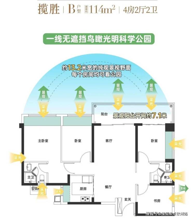 1、景观无敌:真正科学公园首排物业,北向无遮挡看208万平科学公园景观!