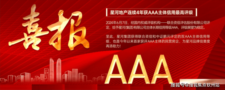 星河控股集团,连续4年荣获AAA主体信用评级,连续十一年获得“中国房地产百强企业”称号。
