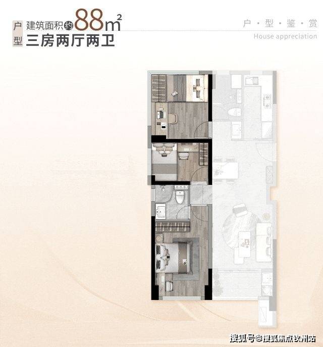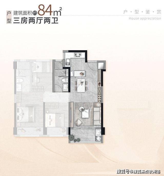 比如全新推出的3栋新品,涵盖建面约84-88㎡三房户型,就藏着空间设计的舒适革命。