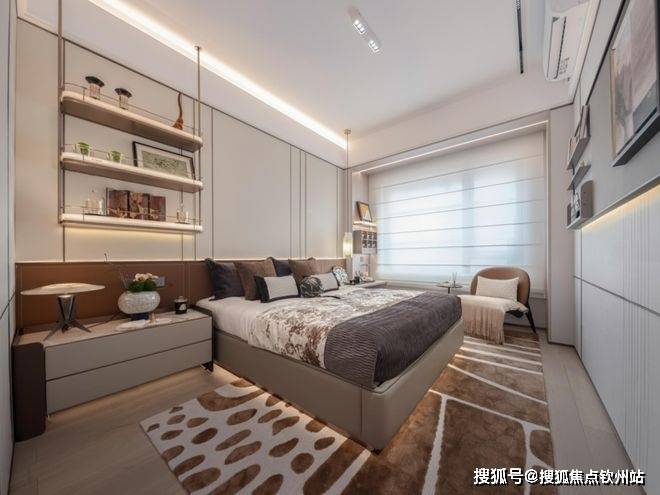 主卧是南向阳光VIP包厢,一整墙宽衣柜能塞下100件衣服,套间设计实现“主卧小家化”,关上门就是二人世界,悄悄话时刻。
