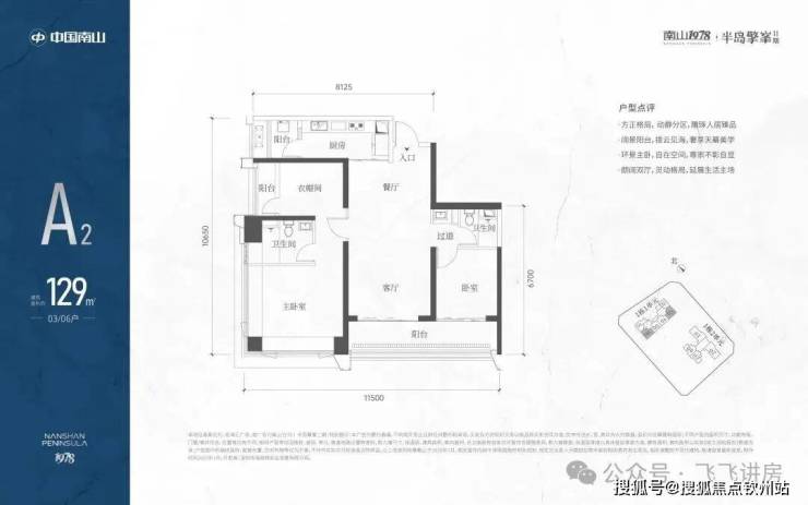 A3也是两条腿,分别是1-1栋04/05,主朝向是东南向,双龙抱珠格局。客厅拥有超大观景阳台,缺点是公卫是个暗卫,小次卧和主卫也对天井外走廊,采光不足。