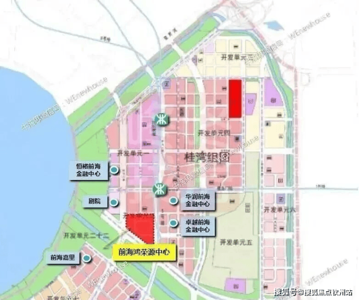 桂湾片区为前海的核心区域,规划重点发展金融、信息、贸易、会计等生产性服务业,吸引企业总部集聚,同时发展生活性服务业,打造集中展示前海整体城市形象的核心商务区。桂湾片区目前已规划、在建和建成的项目相对较多,土地属性也比较丰富多元。除了已基本建成的华润、卓越、恒裕、前海时代一二期住宅项目外,还规划有剧院、国际会议中心、前海湾综合交通枢纽等。