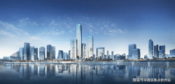 东面临近前海湾,且与规划中的剧院、公园相邻,公建部分的建筑相对低矮,搭配形成错落有序的天际线。