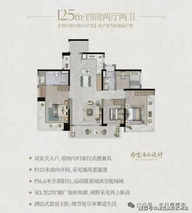 户型亮点:约110%高使用率户型,属珠海“最极致”改善型,提供超大南向面宽和超高窗地比设计,幕墙外立面历久弥新
