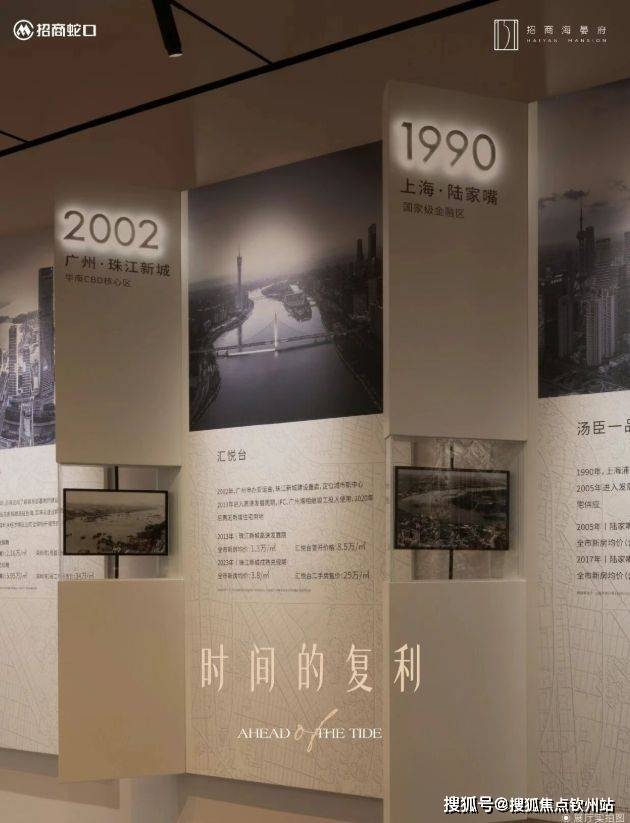 在展厅入口处,陈列了不同时期的前海照片墙。以7个不同时期的前海地图接连,站在此处可以望见前海的过去,也清晰可见前海的走向。