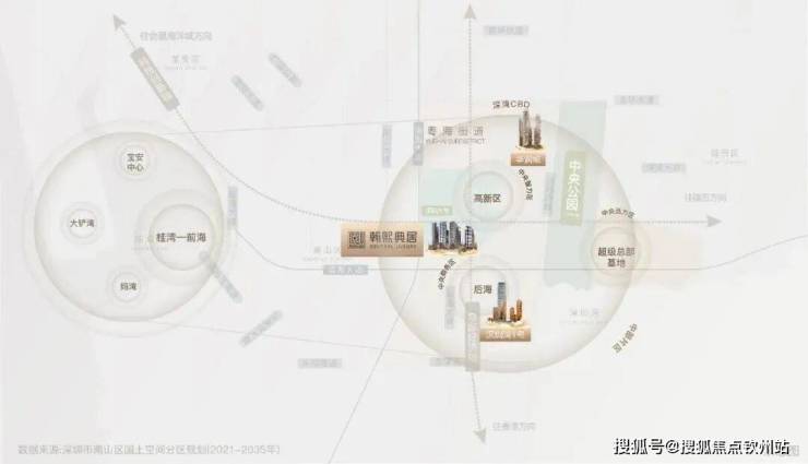 翰熙典居位于南山粤海核心,是一个总体量逾50万㎡,集住宅、办公、约5.7万㎡未来潮流街区(以运营房最终业态及功能为准)、约1.9万㎡精奢酒店等多元业态为一体的TOD+综合体大城项目,地铁9/15号线(在建)深大南站上盖,紧邻深大,背靠腾讯滨海大厦,周边联想、创维、TCL等科技巨头大厦环伺。