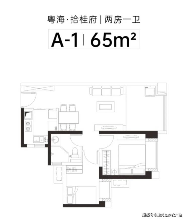(1)两房:约65㎡(唯一小面积产品,L型厨房设计,卫浴三分离);