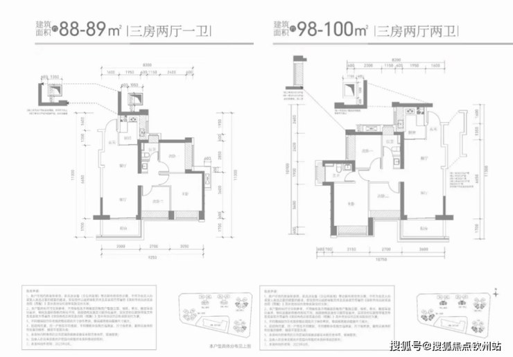 【产品户型】:建筑面积约85-88m²三房两卫、建筑面积约110-114m²四房两卫、建筑面积约113-119㎡四房两卫