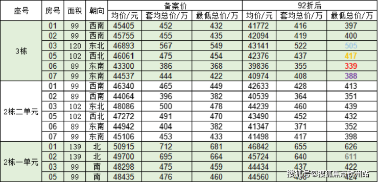 按照开盘92折计算,89平约339万起,99平约388万起,102平约417万起,120平约505万起,139平约611万起