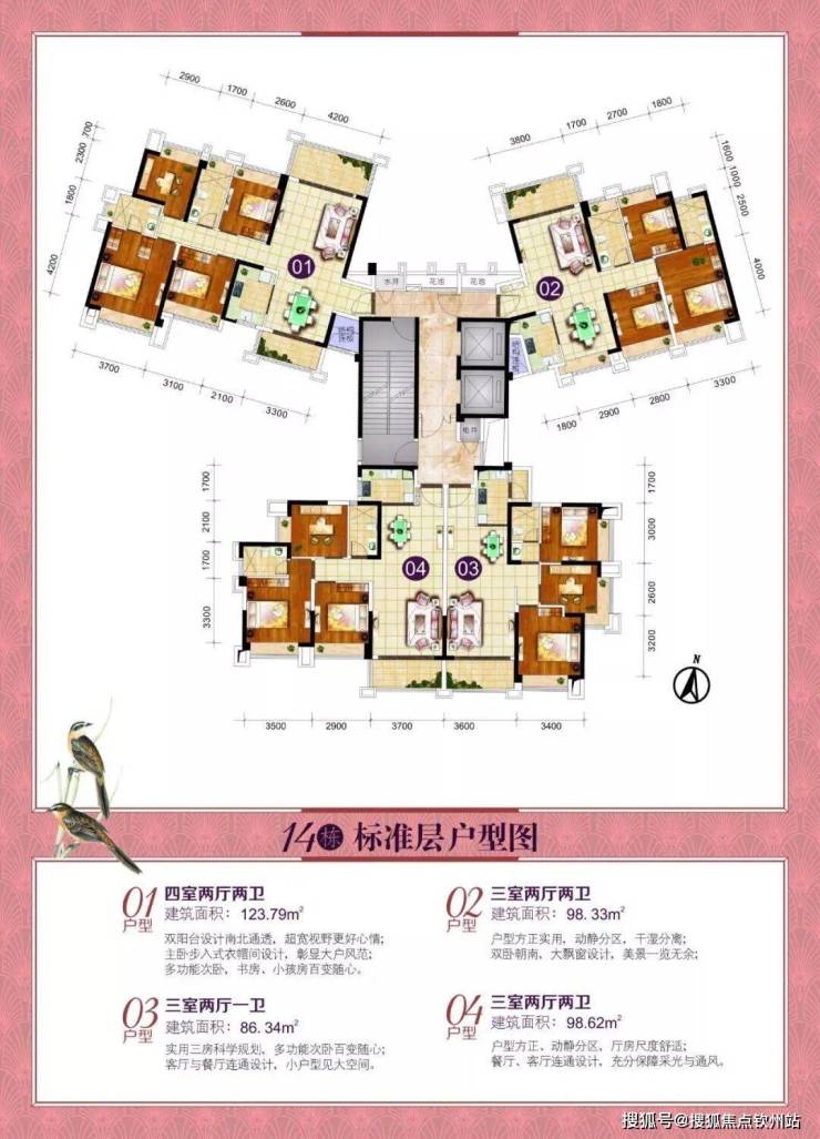 (1)三居:86-99㎡,户型方正、动静分离,采光充足,主卧带卫,干湿分离。