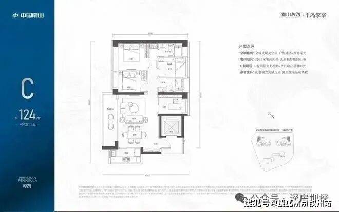 124㎡的3+1房2厅2卫,1栋02/2栋04户型,电梯入户送独立公区,设计的是竖厅格局,LDKB一体化设计,动静分区,主卧套间设计,还有一个多功能间可以做书房,U型厨房,公卫三段式分离,得房率:72.07%(不含赠送),西南朝向。