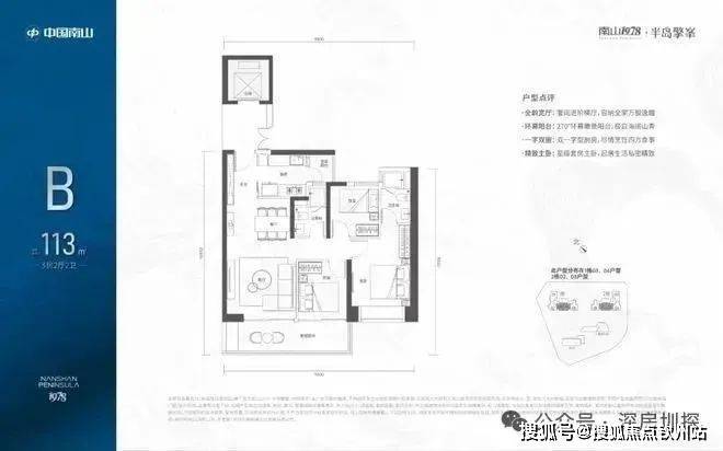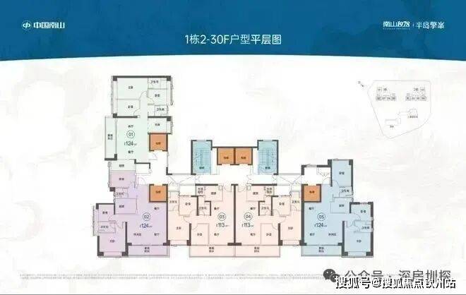113㎡的3房2厅2卫:位于2-30F,全朝南向,带6.5米宽大阳台。