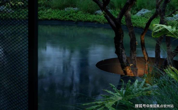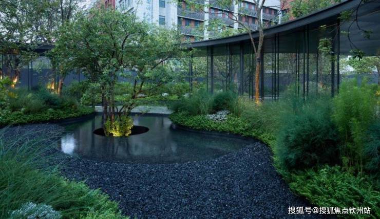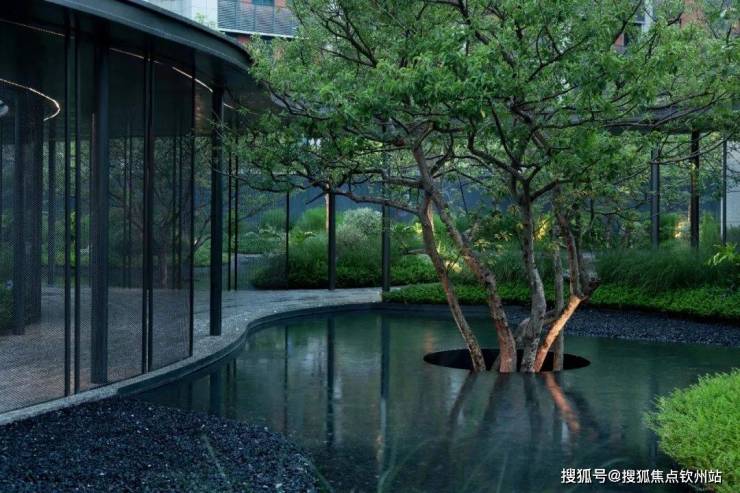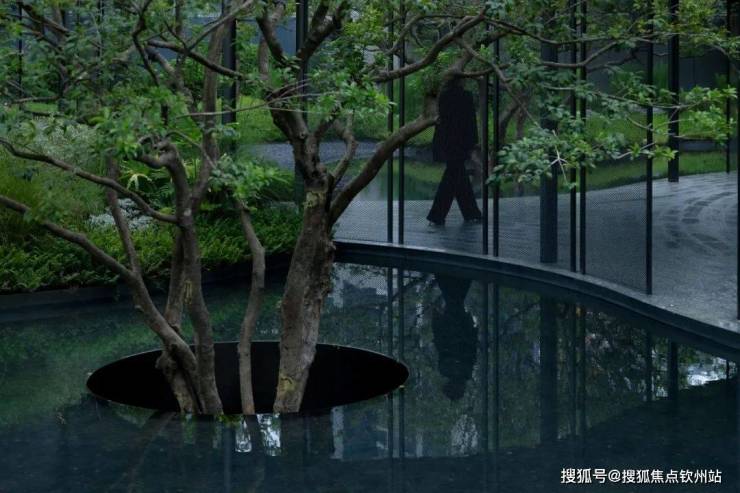 点景的丛生铁冬青伫立在每一个庭院水景中,时而虚影梦幻,时而斜影漫漫。