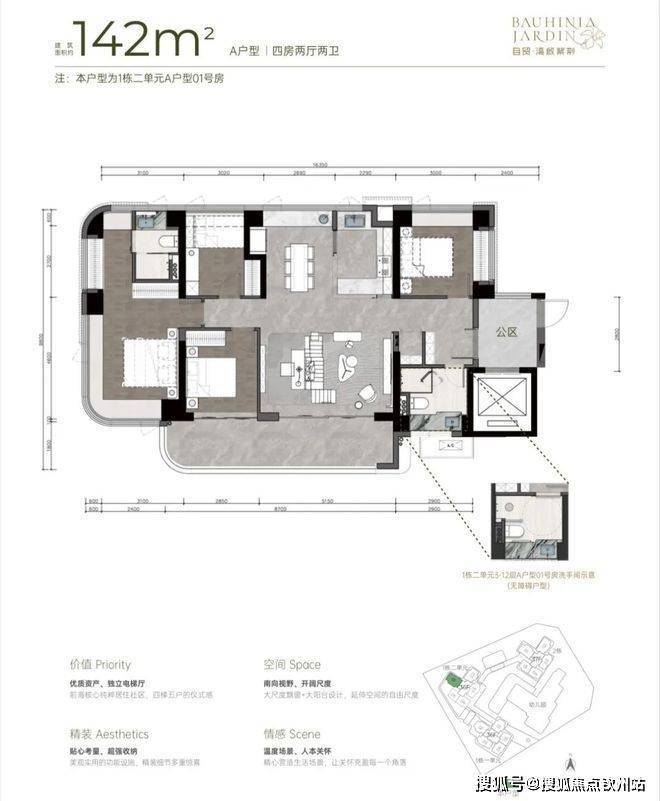 户型:新规设计、高使用率,规划主力为3-4房产品。