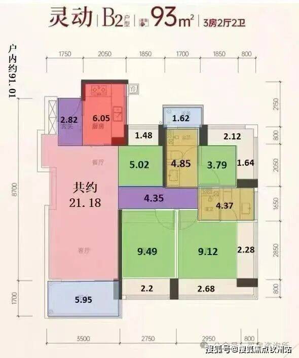产品方面,大户型产品都用上了南北双阳台设计,主卧沿用新规270°大飘窗,连小户型儿童房也用上双飘窗,通风采光效果绝佳,预计得房率高达100%。其中93㎡可以改3+1房