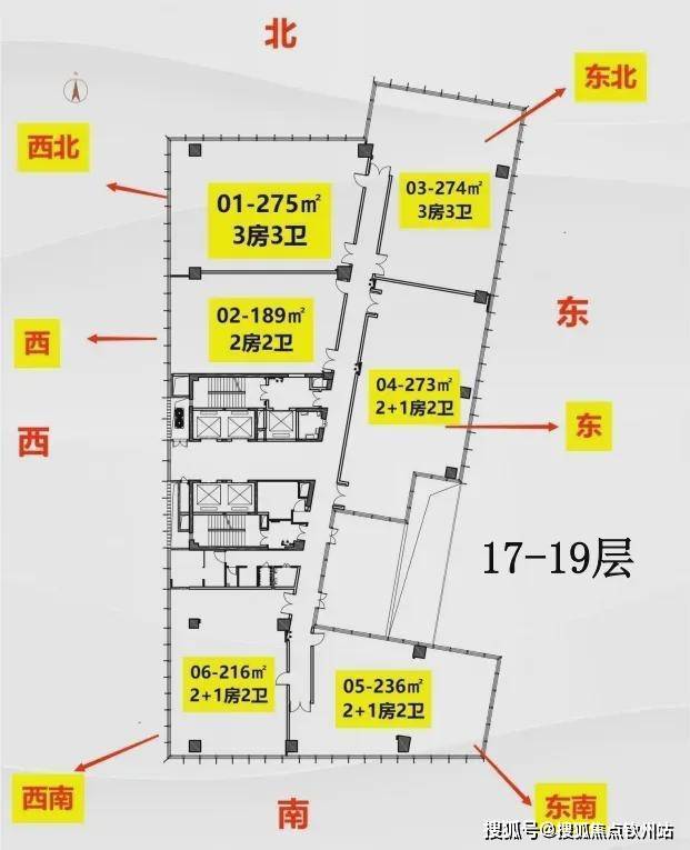 偏核心筒设计约70%使用率电梯厅自然采光 舒适候梯