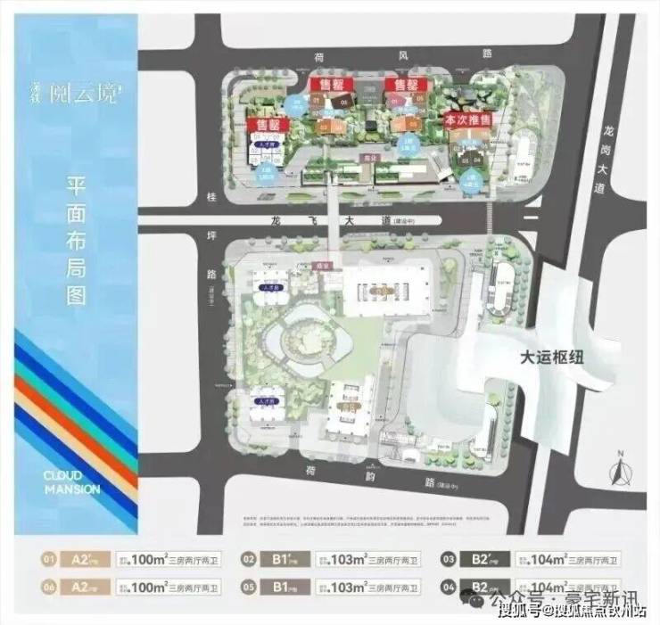 深铁阅云境广场,作为大运交通枢纽上盖物业,总占地面积约5.66万㎡,总建筑面积约51万㎡,以龙飞大道为界共分南北2期开发,有空中连廊相连,北区建设住宅小区,南区兼顾了公共性和便捷性,主要规划超高层办公写字楼和大型商业mall。地处大运枢纽核心地段,也是东部中心首个满足复杂性成熟+商业逻辑的大型TOD综合体项目。